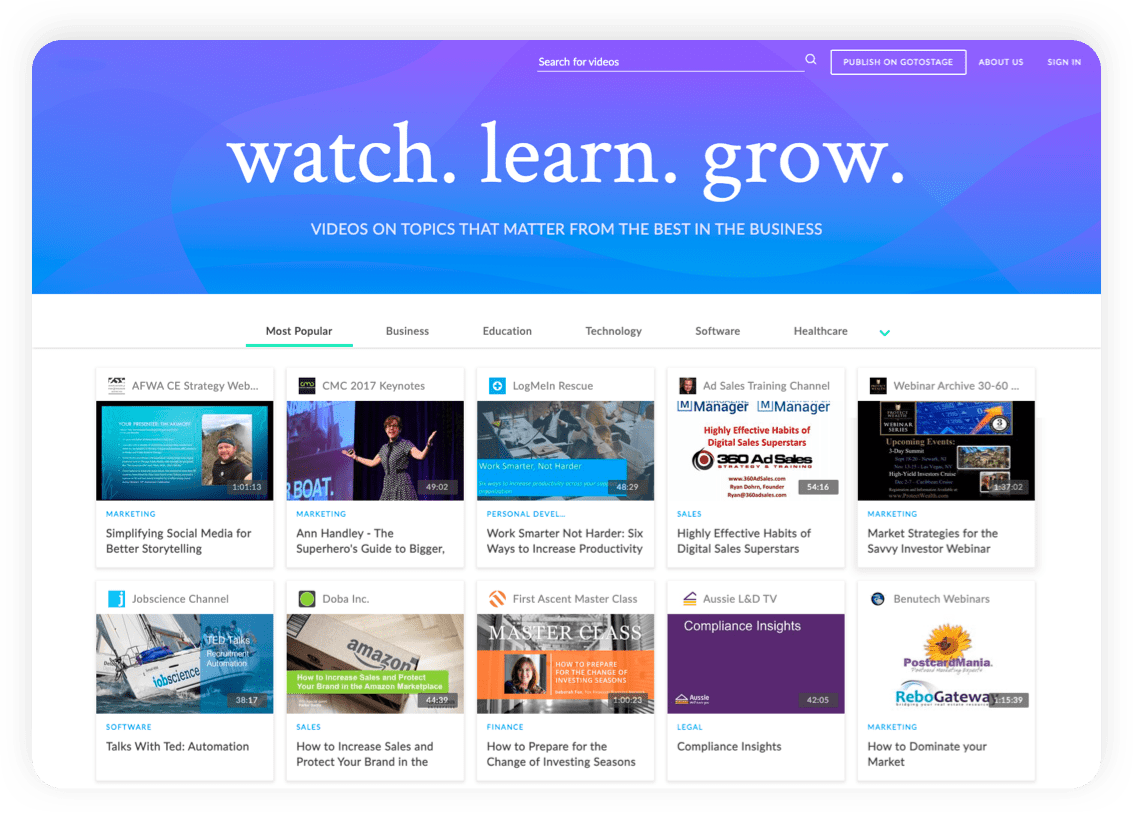 GoTo Stage is a webinar hosting platform where potential clients can discover your most engaging content. You may even land a spot on the front page!